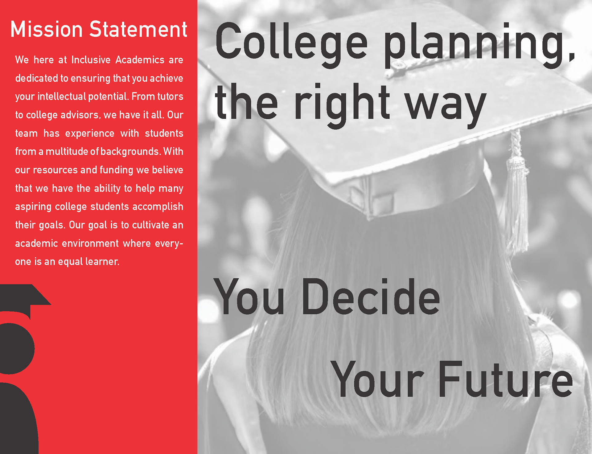 Solo branding project to create a hypothetical organization advocating for a cause. Designed promotional materials for a brand that advocates for equal access to higher education regardless of economic background. Also conceptualized a campaign for the organization and curated their own branding guidelines.