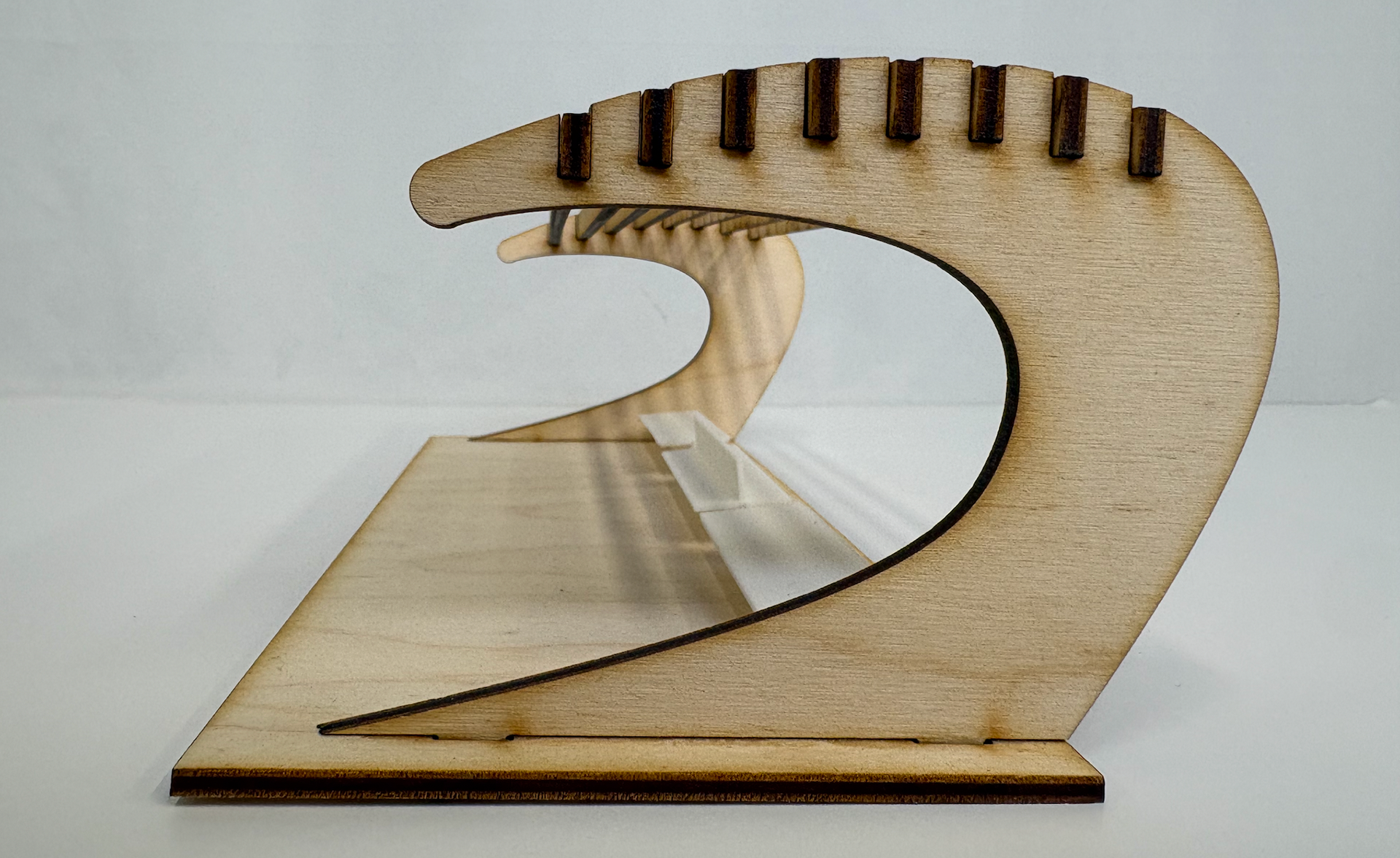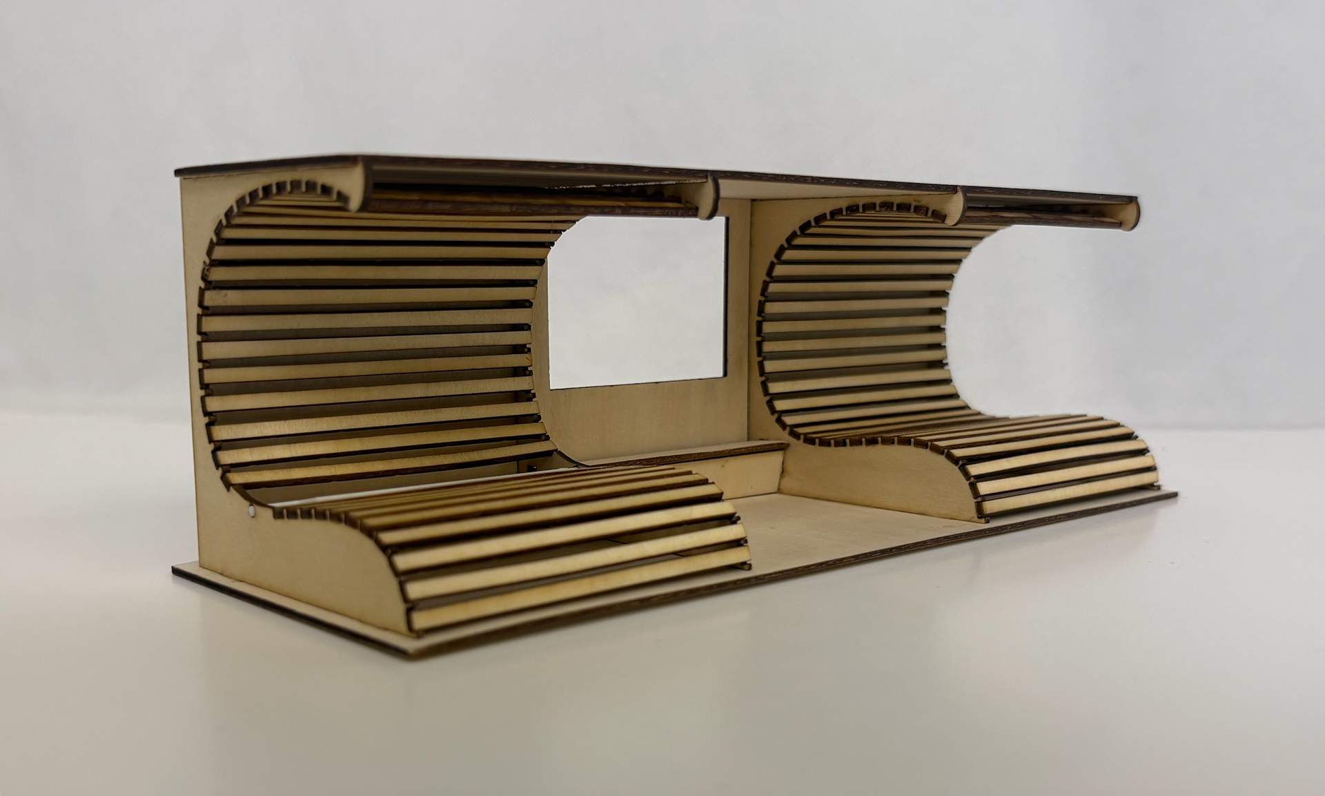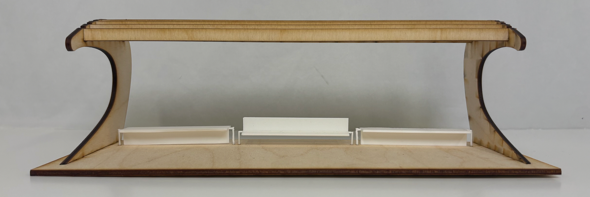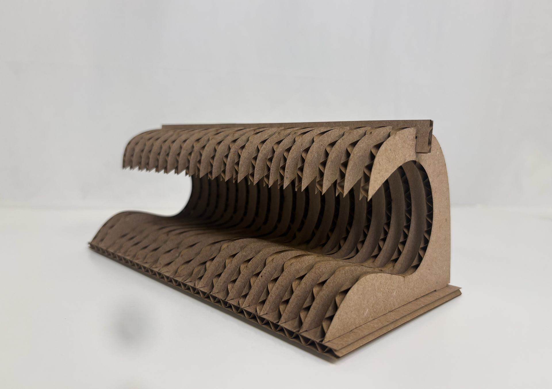 The wave pavilion allows users to spend their time waiting for the streetcar by experiencing the feeling of surfing and being immersed in a wave. A loosely-bolted platform allows the user to test their balance. The three sections of the pavilion along the curve of the wave allow for children to play along the slope, passengers to comfortably wait under shelter, or core strength aficionados to try the balancing apparatus.